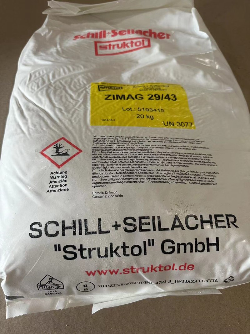 STRUKTOL   ZIMAG 29/43 的氧化锌与氧化镁的比例为 2:3 , 此混合比例使胶料快速交